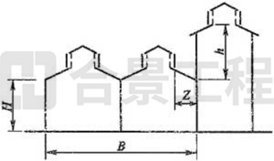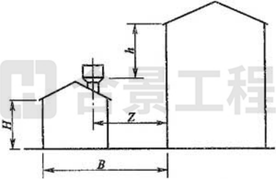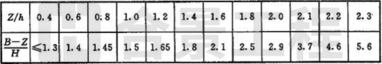 注:当Z/h>2.3时,建筑物的相关尺寸可不受限制。
