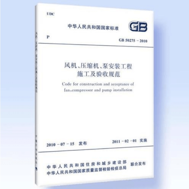 现批准《风机、压缩机、泵安装工程施工及验收规范》为国家标准,编号为GB 50275-2010,自2011年2月1日起实施。其中,第2.3.6(3)、3.1.1(5)、4.7.1(2)条(款)为强制性条文,必须严格执行。原《压缩机、风机、泵安装工程施工及验收规范》GB 50275-98同时废止。