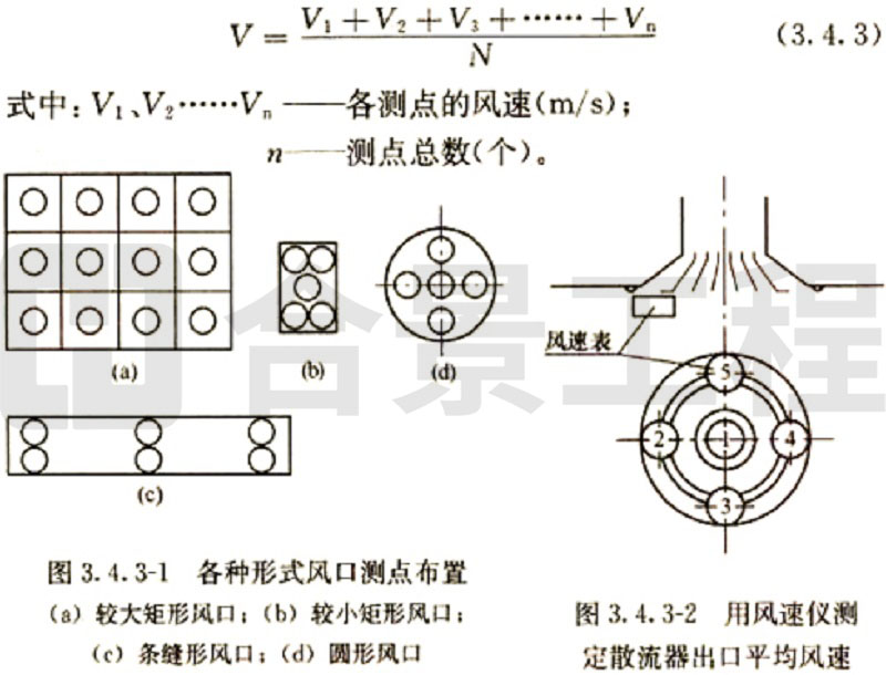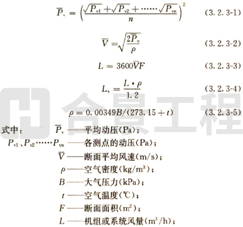 (2)当采用热电风速计或数字式风遗计测量风量时,断面平均风速为各测点风速测量值的平均值,实测风量和标准风量的计算方法与毕托管和微压计测量计算方法相同。