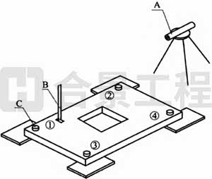8.8.3 尾棒夹具垂直度调整(图8.8.3)应按下列规定进行: