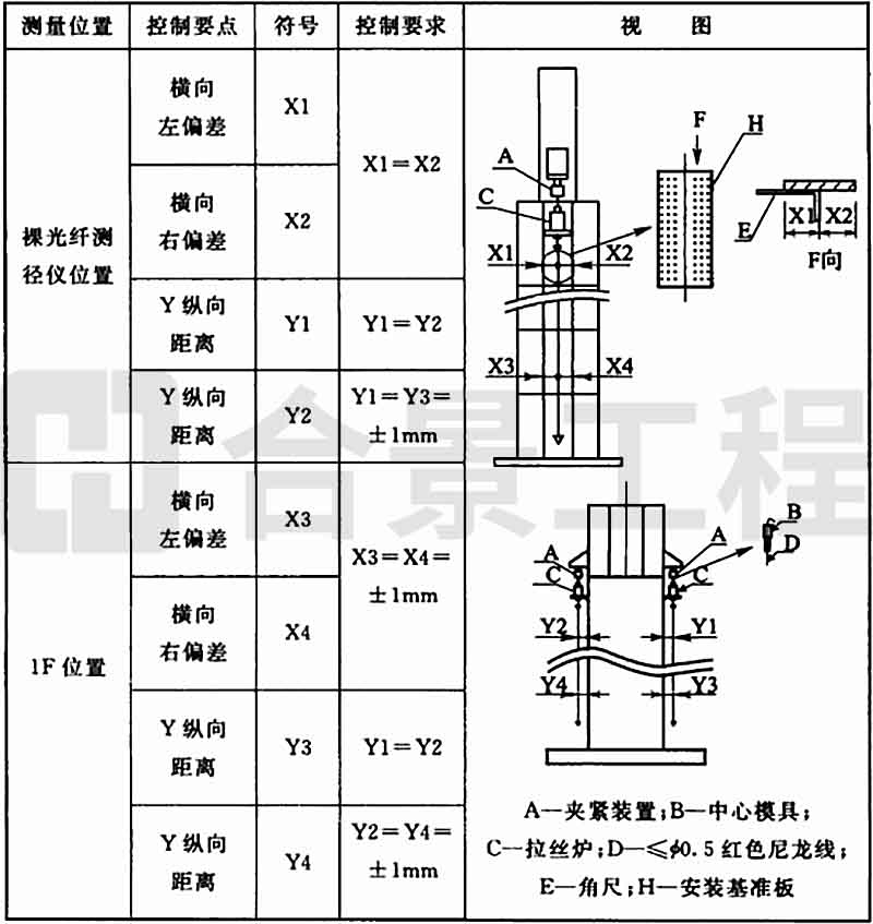 2 测径仪中心与拉丝炉中心垂线的允许偏差应为±0.1mm。