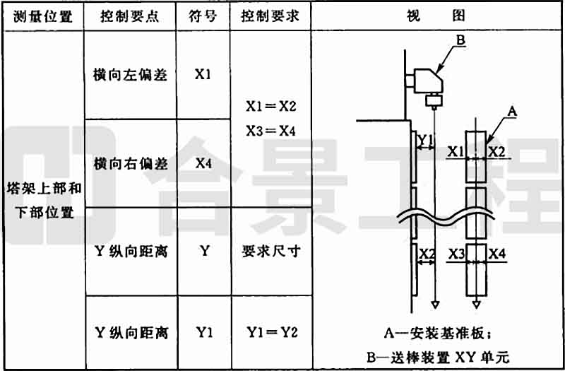 8.8.2 送棒装置垂直度调整时(图8.8.2),上下两部位横向及纵向允许偏差均应为±0.5mm。