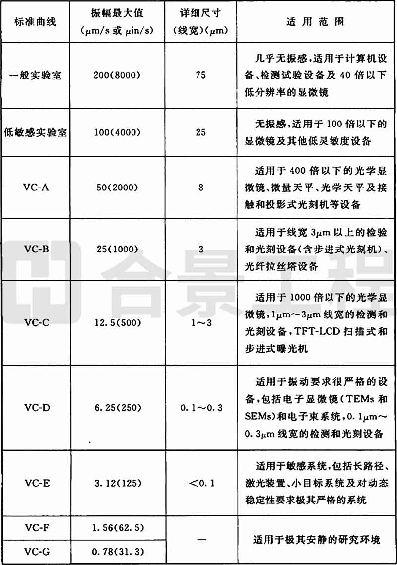 表A.0.2 精密设备、仪器容许振动标准曲线应用说明