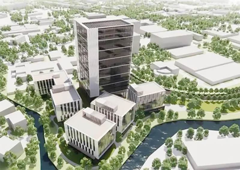 项目聚焦高端医疗器械制造研发行业,吸引上下游配套企业,打造医疗器械创新成果转化基地。项目将保留原有建筑1幢,用于企业生产及研发;新建高层厂房1幢(高80米,共16层),用于零部件检验、模块组装调试及科研;多层厂房4幢,用于研发与生产。配套宿舍1幢。