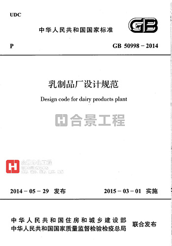 现批准《乳制品厂设计规范》为国家标准,编号为GB50998-2014,自2015年3月1日起实施。其中,第4.6.2、4.7.1(1)、4.8.2、10.4.1(2)条(款)为强制性条文,必须严格执行。